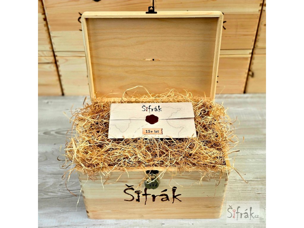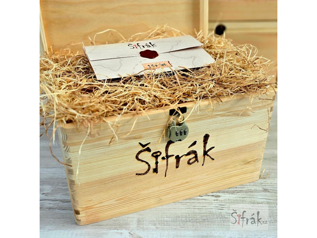 🎁 Prázdná truhla s výplní + zámeček + šifra.