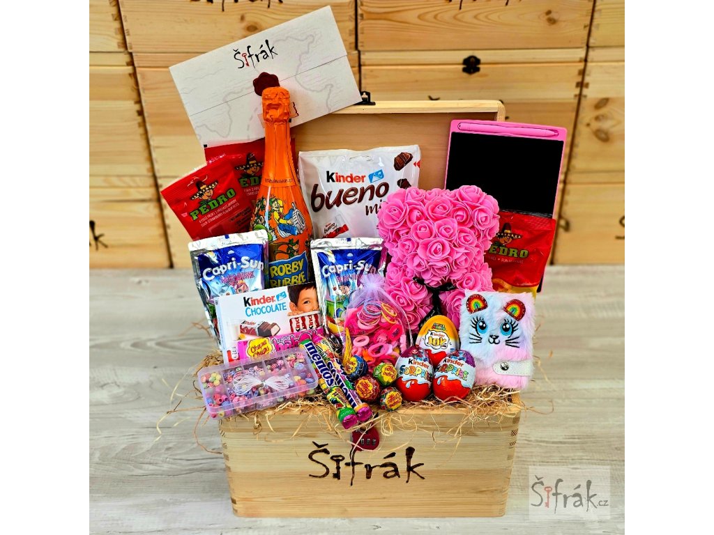 🔐 A to všechno bezpečně ukryté v dřevěné truhle s číselným zámkem, který se otevře jen pomocí zábavné šifry (přizpůsobené věku dítěte).